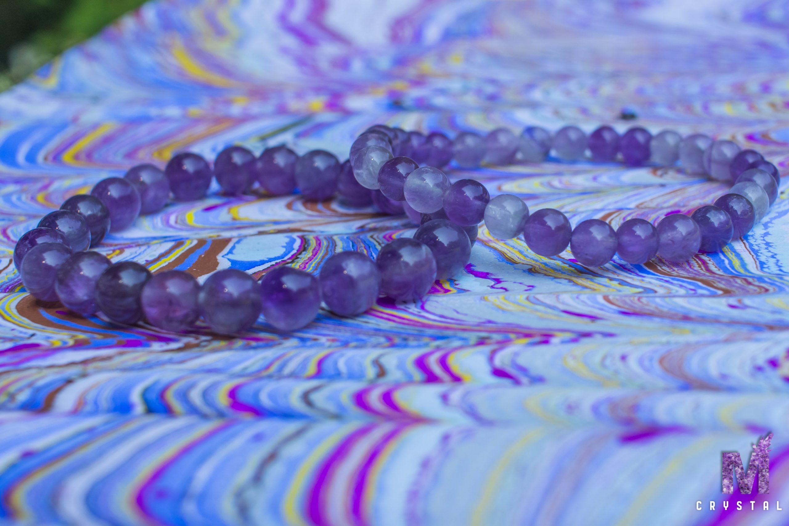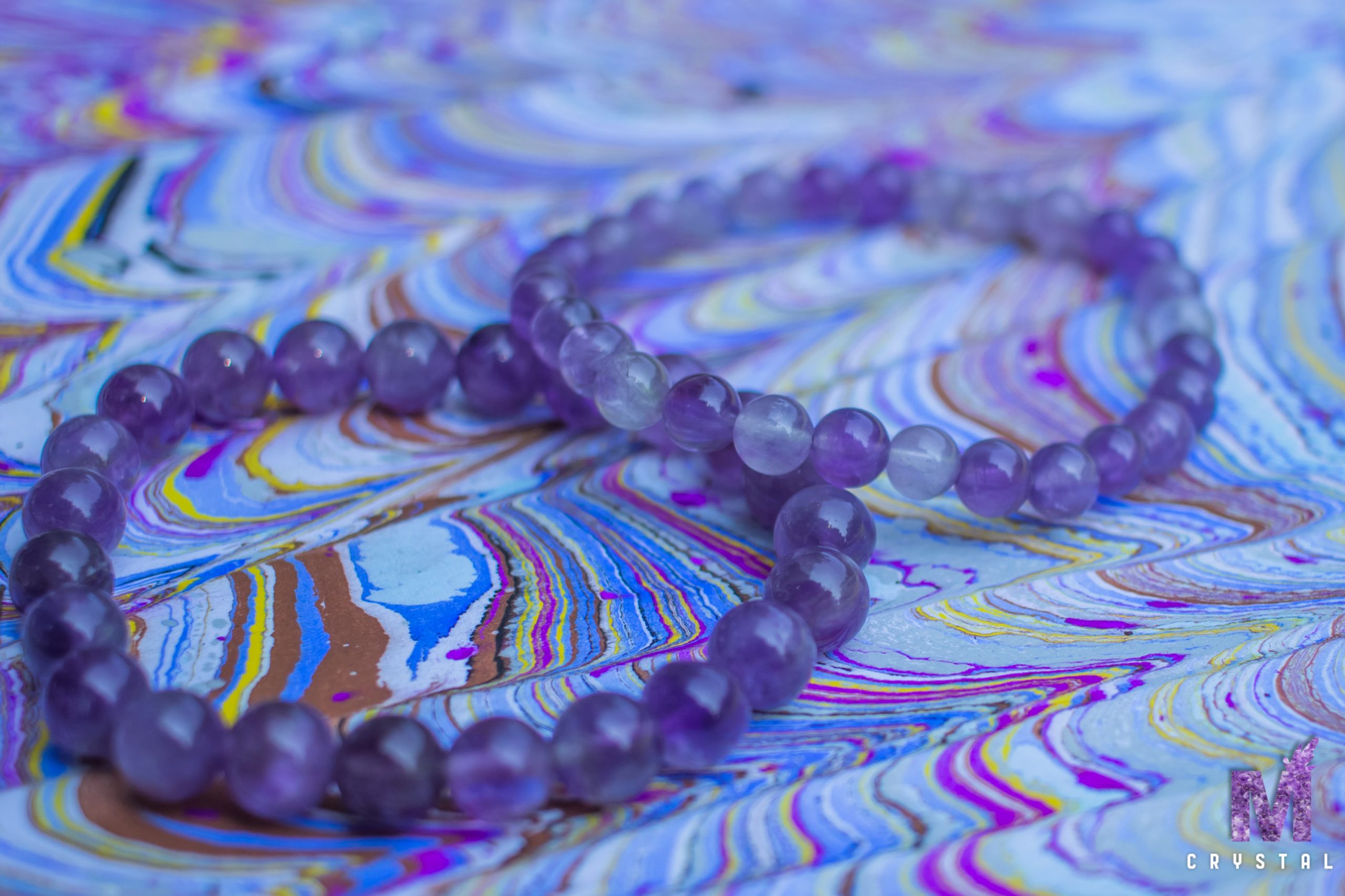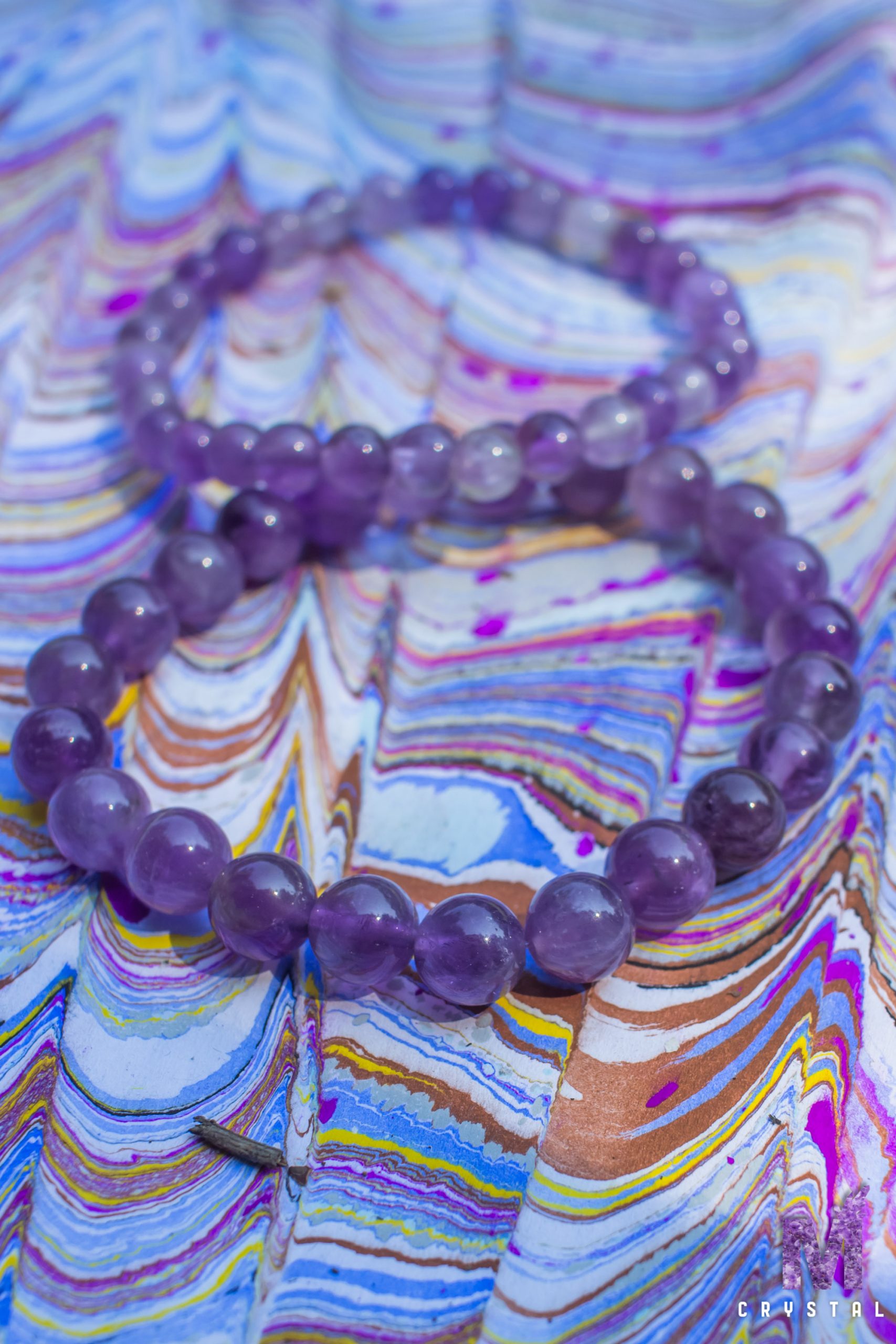 Ametist je prirodni dragulj izvanredne ljepote, poznat po svojim zanosnim ljubičastim nijansama koje variraju od svijetlo do tamno ljubičaste. Njegova boja stvara jedinstvenu igru svijetlosti, često obasjenu zlatnim ili bijelim nitima.Struktura Ametista daje mu dubinu i složenost, a njegova prozračnost može stvoriti fascinantne vizuelne efekte kada se nosi kao nakit. U prirodi, ametist se formira unutar vulkanskih stijena, što dodatno doprinosi njegovom karakterističnom izgledu. Njegova prirodna ljepota, u kombinaciji sa duhovnim svojstvima, čini ga jednim od najomiljenijih dragulja u svijetu kristala.Ametist narukvica izrađena sa puno ljubavi.
