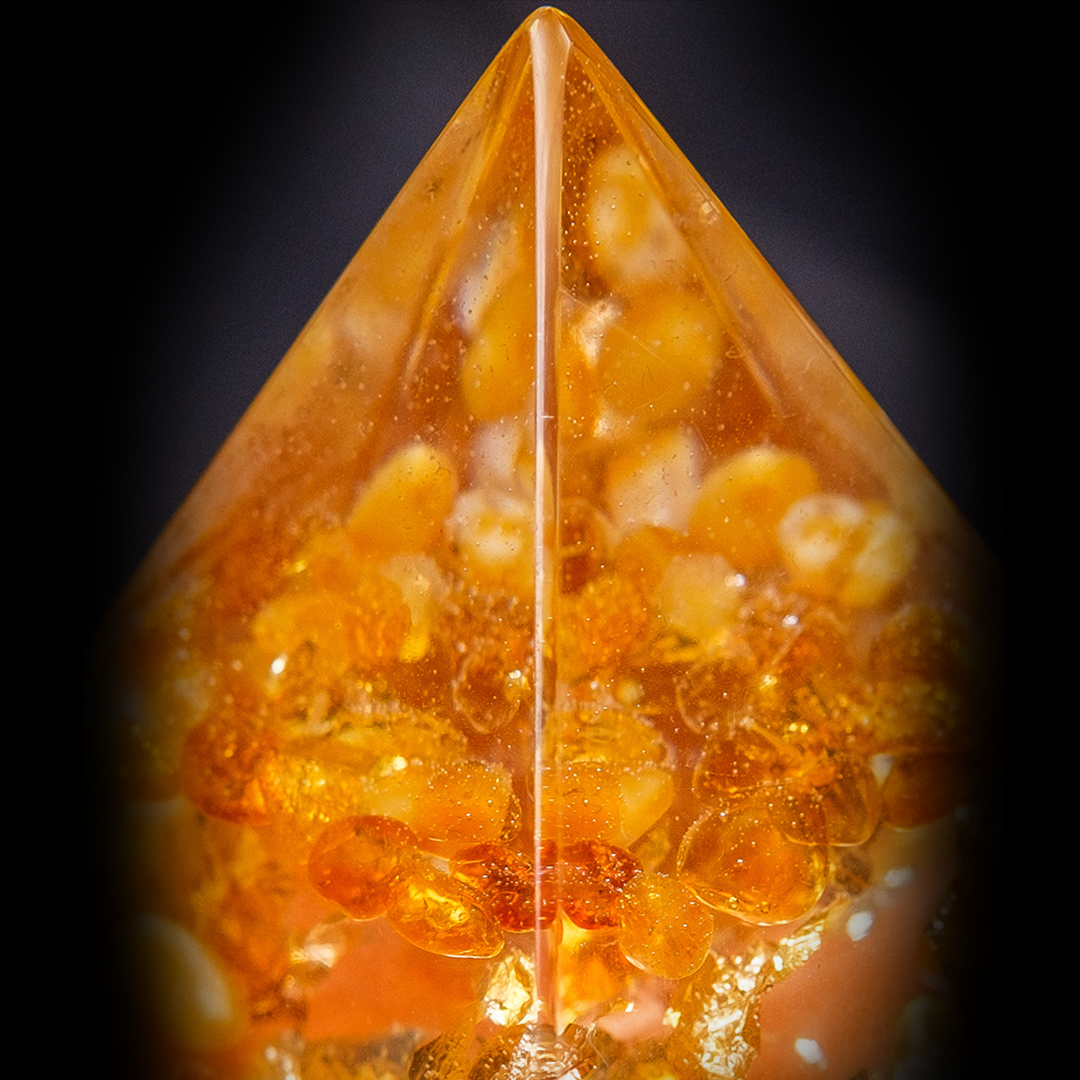 Orgonit piramide sa kristalima Ambera ili Čilibara