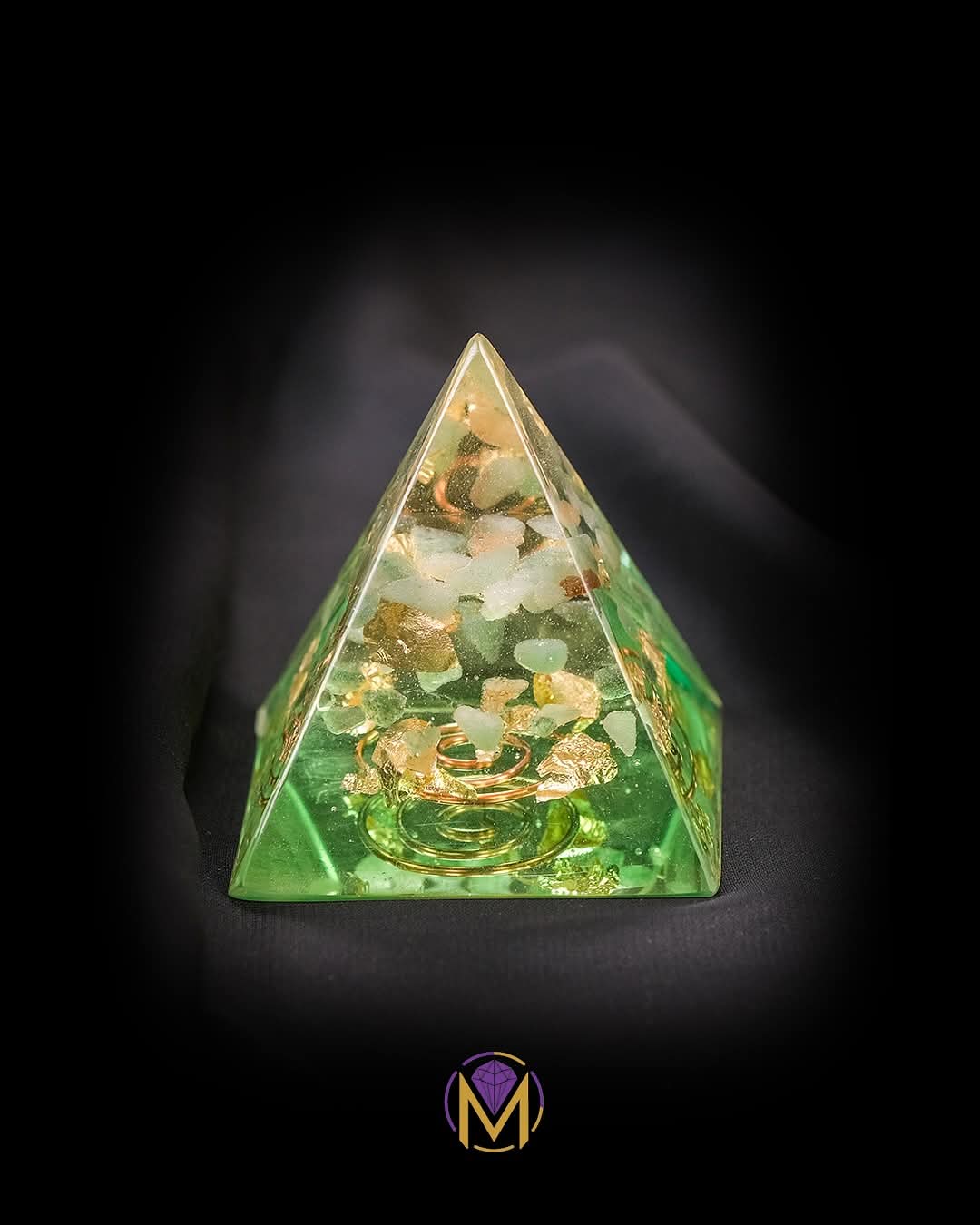 Orgonit piramida pravljena od epoksi smole sa prirodnikristalima Aventurina.