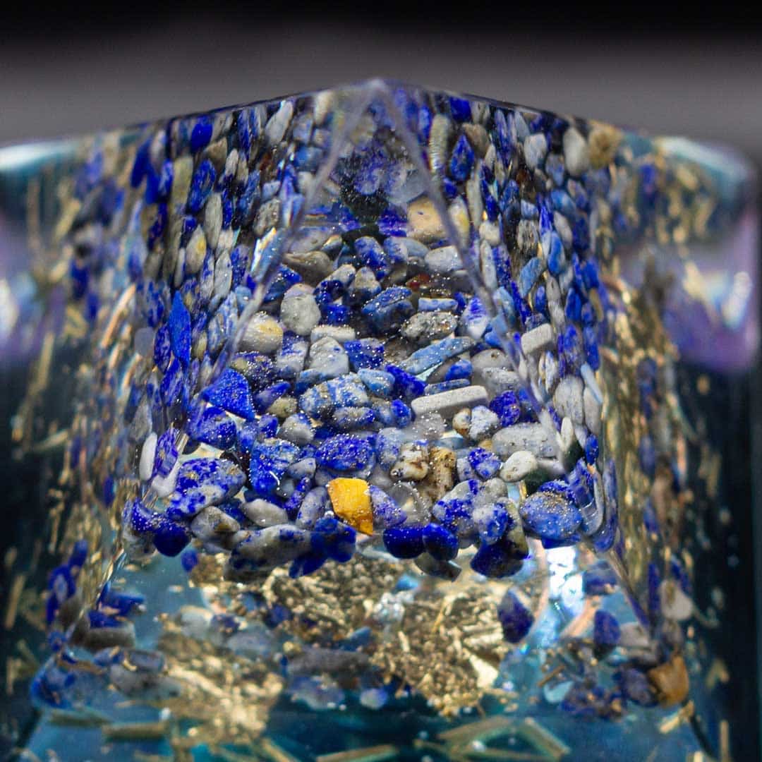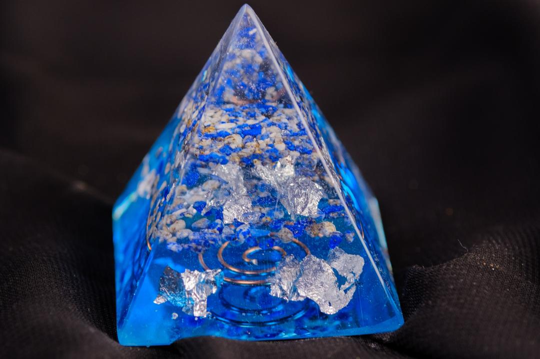 Orgonit piramida pravljena od epoksi smole sa prirodnim kristalom Lapis lazuli.