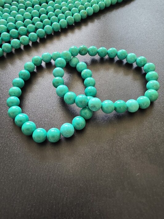 Tirkiz varira od svijetlo plave do intenzivno zelene boje, često sa mrljama ili crnim žilama koje dodaju teksturu kamenu. Ova boja je simbol mira, zaštite i snage.Tirkiz je popularan materijal za izradu nakita od drevnih civilizacija do danas. Često se koristi za pravljenje ogrlica, narukvica, prstenja i drugog nakita.