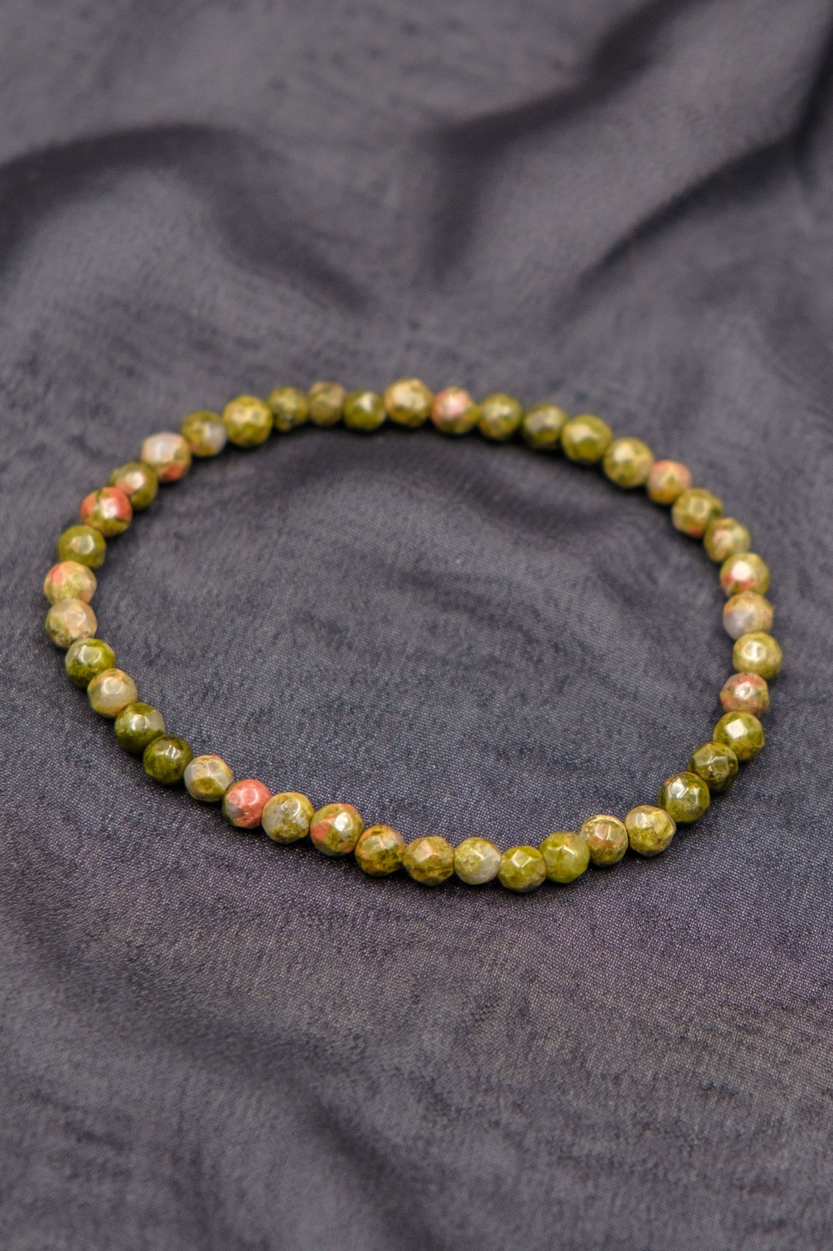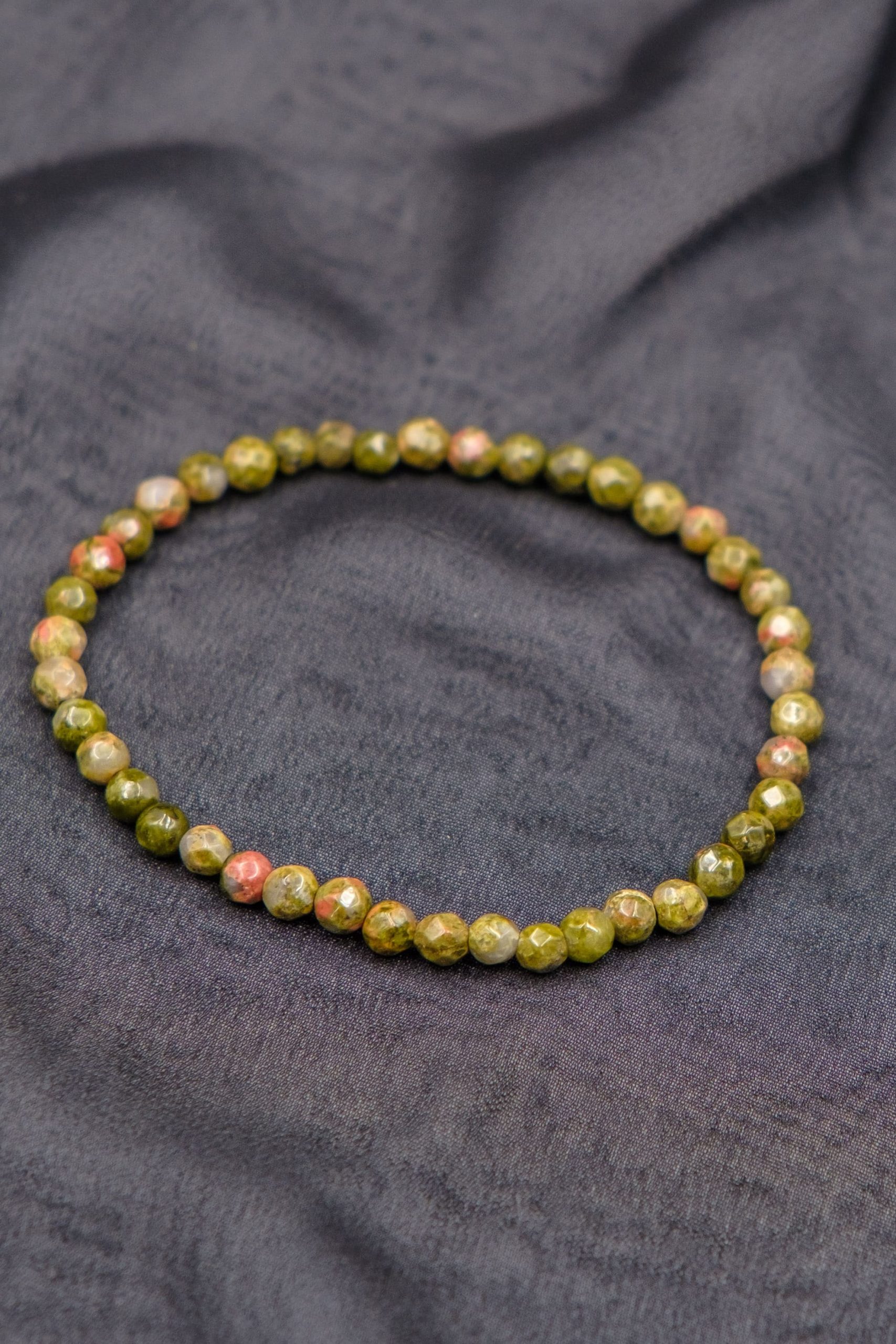 Unikat narukvica fasetirana izrađena je od pažljivo odabranih prirodnih kristala, složenih tako da svaka kuglica ističe svoj jedinstveni uzorak, boju i teksturu. Fasetirana obrada dodatno naglašava sjaj i dimenziju kristala, stvarajući elegantan vizualni efekt koji hvata svjetlo iz svih uglova.